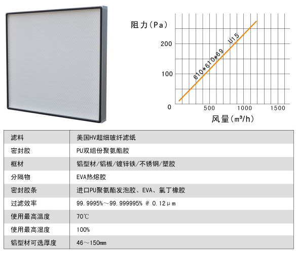 U15無隔板超高效過濾器技術參數