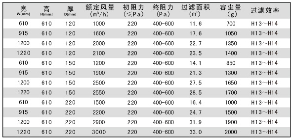 用戶選購指南-拋棄式一體化高效過濾器技術參數