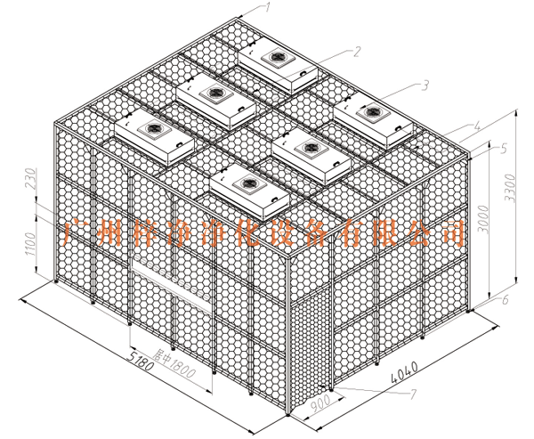 6.潔凈棚的優勢: A.施工速度快,安裝方便 B.成本較低,維護方便 C.容易控制,FFU每臺自帶風機;